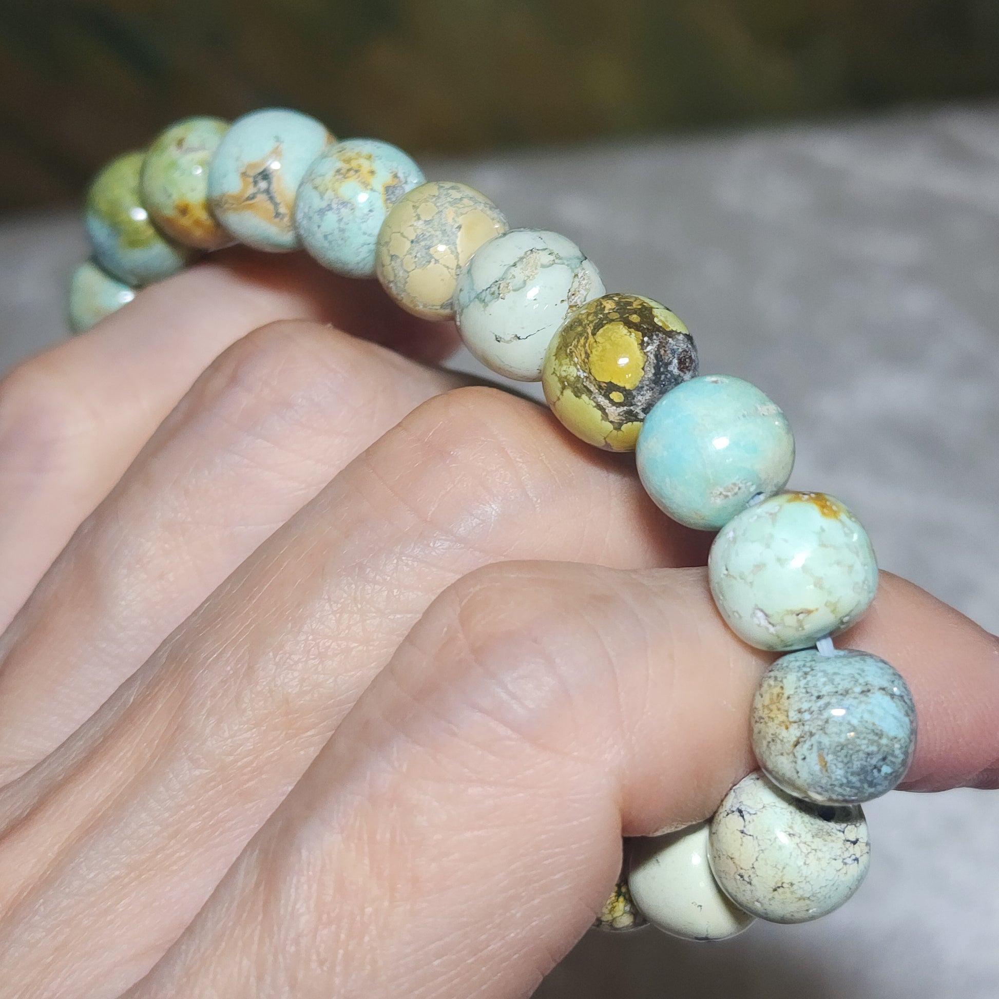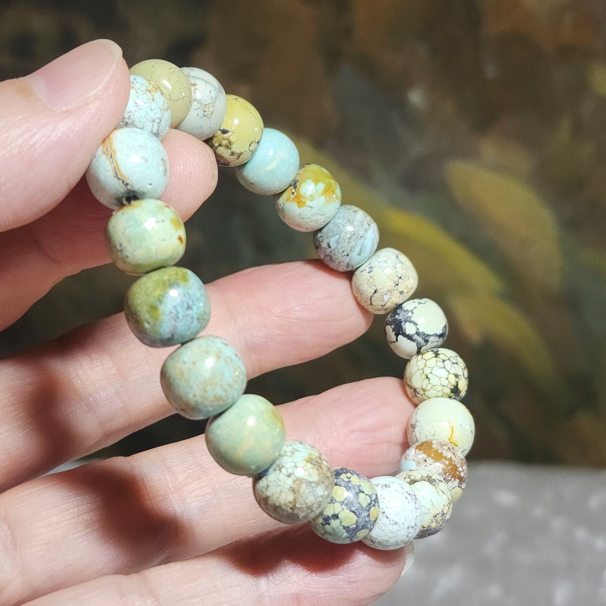![10mm+ Premium natural untreated Hubei Turquoise traditional old style beads bracelet [Natural Crystal] 26克天然原矿湖北松石老型珠手链](http://gegegems.com/cdn/shop/files/1000088429.jpg?v=1757674859&width=1445)