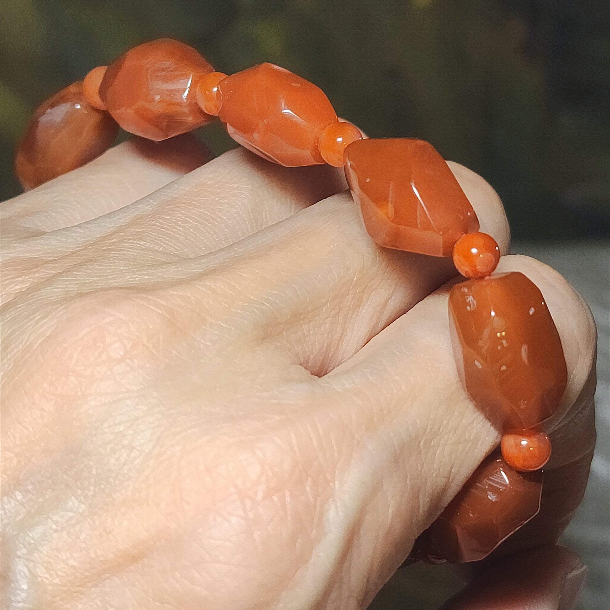 Premium Sichuan Jiukou Nan Hong persimmon red freeform faceted bracelet (with certificate) 精品川料九口南红柿子红随形切面手链(带证书)
